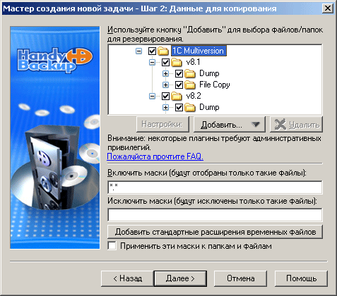Резервное копирование 1С 8.2 с помощью Handy Backup. Методы бэкапа
